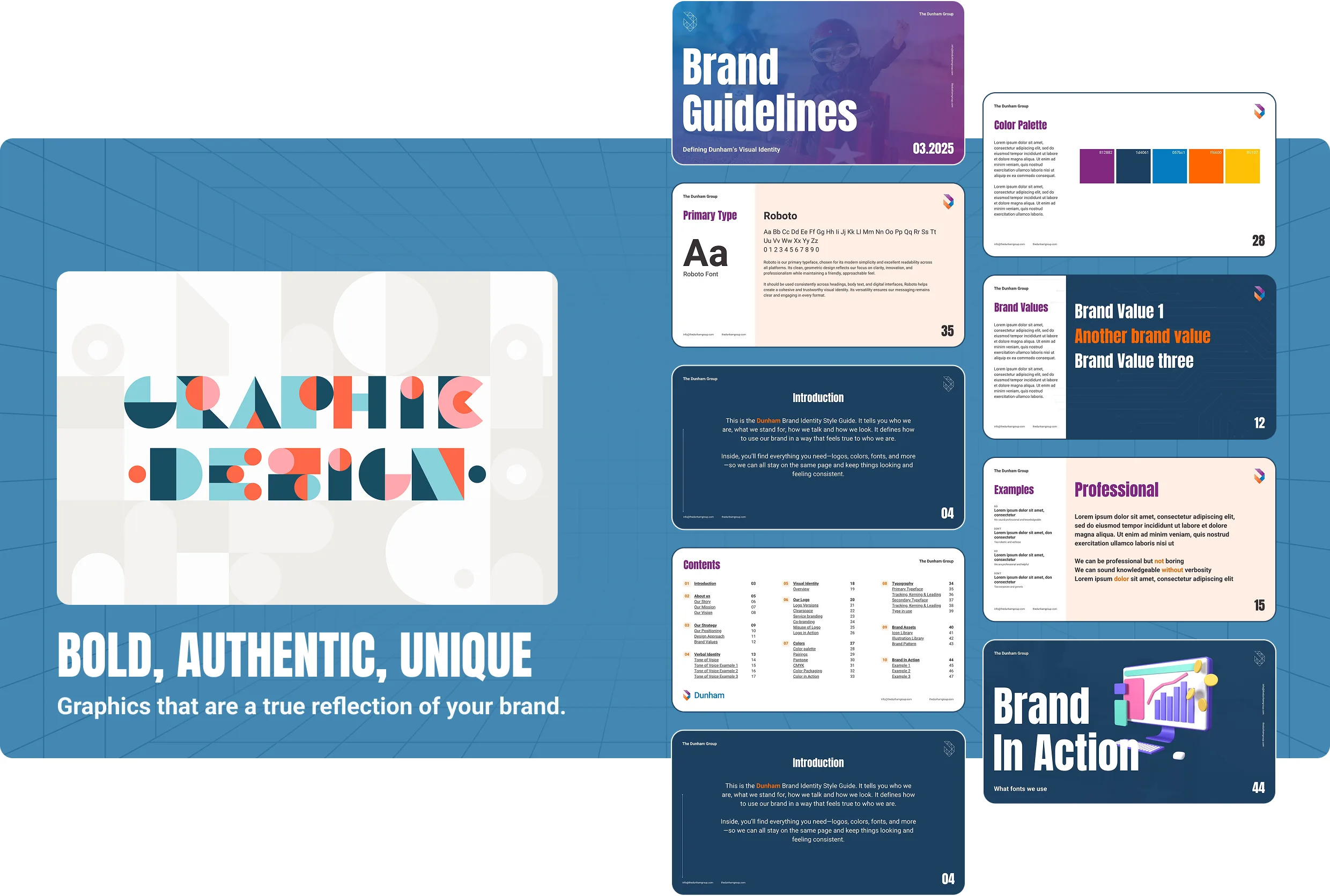 At Dunham, we deliver professional, affordable, and impactful graphic design services for businesses that need more than templates. From digital assets to print materials, we craft brand visuals that look great and perform even better. Visuals that are built to support sales, marketing, and communication efforts across all platforms.